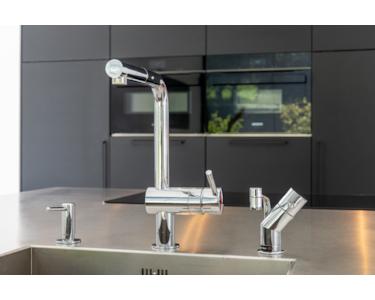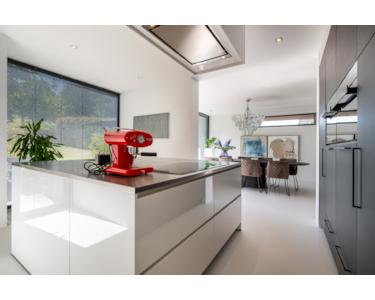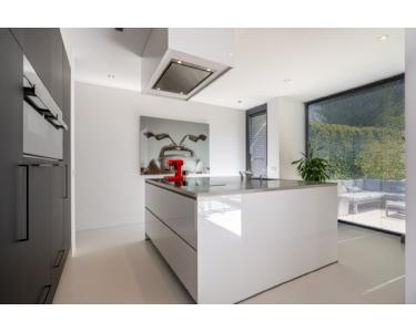 Die moderne Küche wurde erst vor einem Jahr eingebaut. Die großzügige Kochinsel mit Arbeitsplatte aus Edelstahl ist mit hochwertigen Siemens-Geräten ausgestattet, darunter ein Kombi-Backofen, ein Dampfgarer, eine Spülmaschine, ein Kühlschrank und ein Gefrierschrank. Darüber hinaus verfügt die Küche über einen Quooker - einen innovativen Wasserhahn sowie eine Dunstabzugshaube der Marke Novi und viel Stauraum.