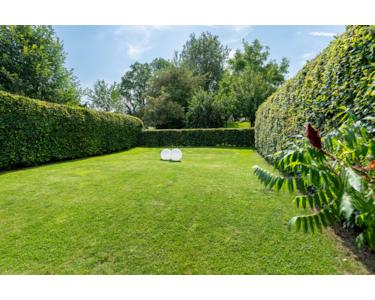 Der sonnige Garten ist nach Südwesten ausgerichtet und bietet viel Privatsphäre. Eine großzügige Terrasse und ein gepflegter Rasen werden von einer dichten Buchenhecke eingefasst, sodass man die Ruhe und das viele Grün ungestört genießen kann.