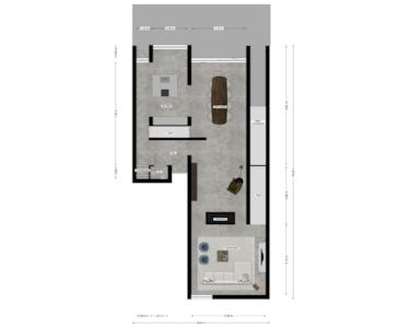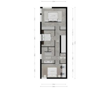 Das Erdgeschoss ist mit einem Epoxidboden, einer Fußbodenheizung, integrierter Beleuchtung und verputzten Wänden versehen.