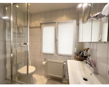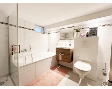 Das Kellergeschoss rundet das Raumangebot ab: Hier befindet sich ein weiteres, sehr großzügiges Badezimmer mit Dusche, Badewanne, WC und Waschtisch, das erst im Jahr 2023 vollständig saniert wurde.
