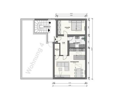 • 65 m² (Wohnfläche; Kniestock Roh 1,40 m, mit abgehängter Decke ca. 1,30 m)