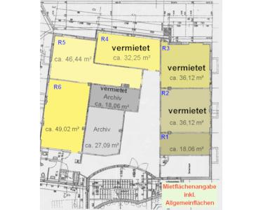 Im Gartengeschoss stehen 3 Büroräume sowie ein Lagerraum zur Vermietung.
