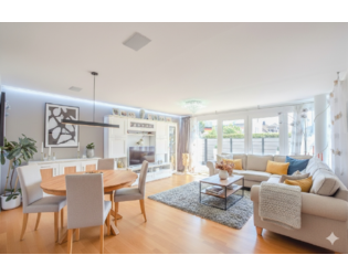 * großer, sonnendurchfluteter Wohnbereich mit offener Küche und großer Fensterfront