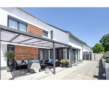 * Pergola mit Glasdach und Verschattungsmöglichkeit