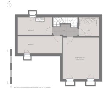 Der Hobbyraum im UG wurde anteilig in die Wohnfläche mit einberechnet.