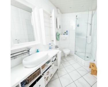 Ein weiteres Badezimmer mit Duschkabine sorgt auf dieser Ebene für zusätzlichen Komfort und kurze Wege.