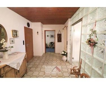 Aufteilung im EG: große Diele - davon durch Glasbausteine und Glastür getrennt ist das helle, 40m² große Wohnzimmer. Von hier gelangt man durch die Terrassentür zum Garten (mit Sondernutzungsrecht, das heißt: alleinige Gartennutzung), außerdem Küche, Badezimmer, Eltern-Schlafzimmer und Kinderzimmer.