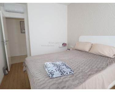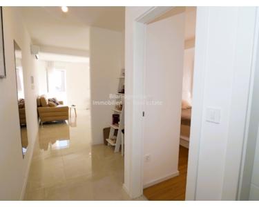 Die Böden der Wohnung sind mit hochwertigen Keramikfliesen und Laminat ausgelegt. Das Badezimmer verfügt über eine Fußbodenheizung, die Schlafzimmer und das Wohnzimmer sind mit Inverter-Klimaanlagen ausgestattet. Die Wohnung verfügt über einbruch- und feuerfeste Türen, elektrische Rollläden aus Aluminium sowie Insektenschutz an Fenstern und Balkontüren.