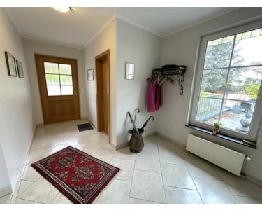 Die Hauptwohnung erstreckt sich über zwei Etagen und überzeugt durch ihre durchdachte Raumaufteilung. Im Erdgeschoss befinden sich ein großzügiger Wohn- und Essbereich mit Wintergarten und Terrasse, eine Küche mit angrenzendem Vorratsraum, ein Gäste-WC, ein Hauswirtschaftsraum sowie der Zugang zur Garage. Im Dachgeschoss stehen zwei Kinderzimmer, ein weiteres Schlafzimmer, ein geräumiges Tageslichtbad und ein Spitzboden mit zusätzlicher Abstellfläche zur Verfügung.