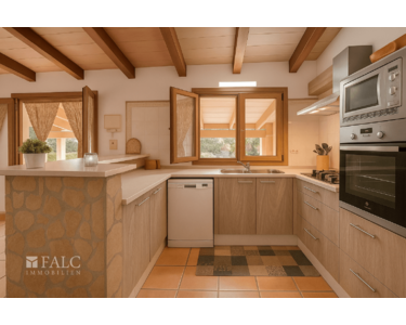 Für Wohlfühlklima sorgen Klimaanlagen in allen Räumen und eine Öl-Heizung. Ein Abstell- bzw. Waschraum bietet praktischen Komfort, während die geräumige Garage Platz für 2–3 Autos bietet. Mediterraner Stil, liebevoll gepflegter Garten, Natursteinakzente und ein großer Pool machen diese Finca zu einem echten Traumobjekt.