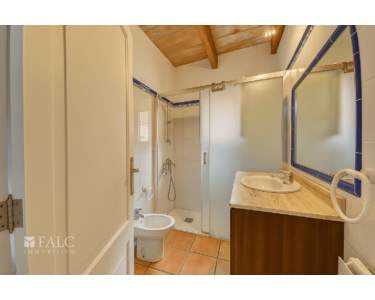 Zwei überdachte Terrassen sowie ein kleines Pool-Bad mit WC und Dusche, direkt vom Außenbereich zugänglich, laden zum Genießen unter freiem Himmel ein. Eine großzügige Dachterrasse mit Außentreppe eröffnet spektakuläre Ausblicke auf grüne Berge und die Küste – perfekt für unvergessliche Sonnenuntergänge.