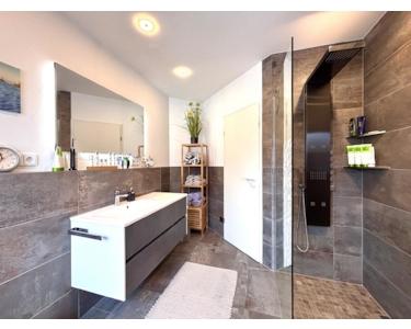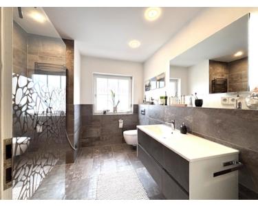 Das Haus präsentiert sich in einem sehr guten und gepflegten Zustand. Besonders hervorzuheben ist die im Jahr 2020 sanierte Elternbad, das mit modernen Fliesen, einer hochwertigen Ausstattung und einem zeitgemäßen Design überzeugt.