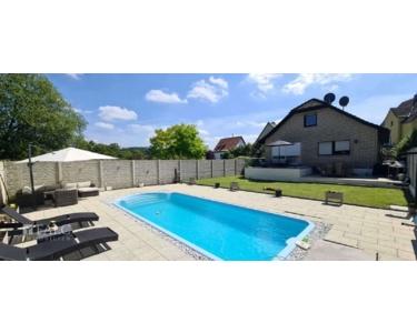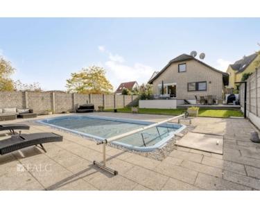 Ein weiteres Highlight erwartet Sie im Garten: Ein beeindruckender Pool mit 8,30 Metern Länge und 3,60 Metern Breite verwandelt das Grundstück in eine private Wellness-Oase. Ob Sie morgens Ihre Bahnen ziehen oder abends beim Sonnenuntergang entspannen – hier fühlt sich jeder Tag ein bisschen nach Urlaub an.
