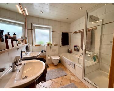Hier befinden sich zwei große Schlafzimmer und ein Tageslichtbad mit Badewanne und Dusche.
