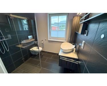 Erdgeschoss: Diele, offene Küche mit Einbauküche, Wohn- und Esszimmer mit Terrassenzugang, Tageslichtbad mit bodentiefer Dusche, Hauswirtschaftsraum;