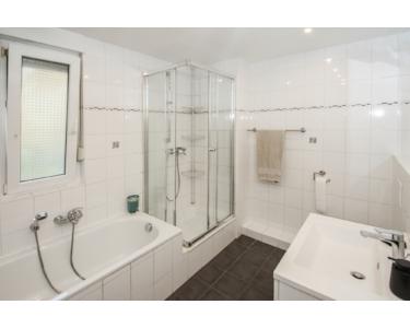 Im Obergeschoss befindet sich die Schlafebene mit drei Räumen und einem modernen Bad mit Dusche und Wanne.