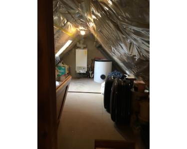 Die Warmwasseraufbereitung und Wärmeversorgung erfolgt über eine Gastherme, welche im Spitzboden verbaut ist. Es erfolgt eine jährliche Wartung.