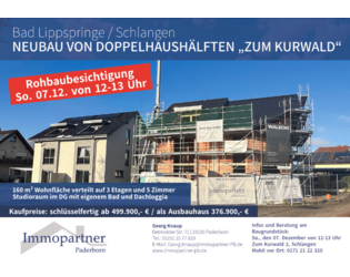 Diese Neubau-Doppelhaushälften befinden sich in Bad Lippspringe / Schlangen, Zum Kurwald / Ecke Paderborner Straße einer ruhigen und familienfreundlichen Wohnlage.