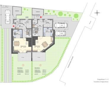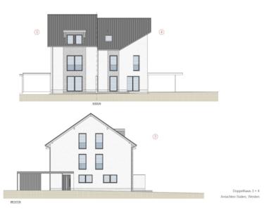 Diese Häuser 3 und 4, können als Ausbauhaus gewählt werden und verschiedene Ausbaustufen können zusätzlich erworben werden.