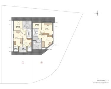 Das Dachgeschoss ist besonders vielseitig, hier sind 3 Zimmer möglich, ebenfalls bietet es einen großen Wohnraumraum oder Arbeitszimmer, welches den Zugang zur Dach-Loggia ermöglicht und sich ideal für entspannte Stunden oder kreative Tätigkeiten eignet. Ein zusätzliches Badezimmer mit Dusche und Dachflächenfenster sorgt für viel Licht. Ein Abstellraum rundet das Dachgeschoss ab und bietet zusätzlichen Stauraum.