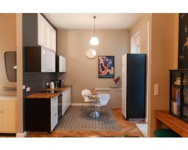 Die kernsanierte Einheit vereint den unverwechselbaren Charme des Berliner Altbaus mit modernem Wohnkomfort. Hohe Decken, restaurierte Gründerzeit-Türen und edles Eichen-Fischgrätparkett verleihen den Räumen eine stilvolle Atmosphäre.