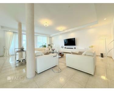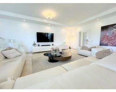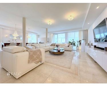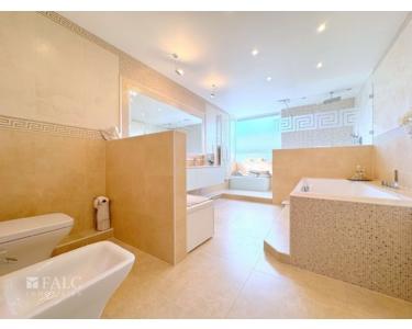 Die Hauptwohnung mit ca. 370 m² Wohnfläche erstreckt sich über Erd- und Obergeschoss und besticht durch ein durchdachtes Raumkonzept sowie exklusive Ausstattung. Hochwertige Fliesen in nahezu allen Bereichen – teilweise edelste Materialien aus Italien – verleihen der Wohnung ein elegantes, modernes Ambiente.
