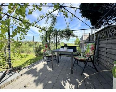 Was die Energieeffizienz betrifft, so ist das Haus mit einer hochwertigen 3-fach verglasten Fensterfront ausgestattet, die für eine hervorragende Dämmung sorgt. Die Photovoltaikanlage auf dem Dach hat eine Leistung von 5,7 kWp und ermöglicht die Eigenproduktion von Strom. Durch die Einspeisevergütung trägt sie zusätzlich zur Wirtschaftlichkeit bei. Ergänzt wird das System durch Solarthermie, die die Warmwasserbereitung unterstützt. Diese nachhaltigen Maßnahmen reduzieren die Energiekosten erheblich und machen das Haus zukunftssicher und umweltfreundlich.