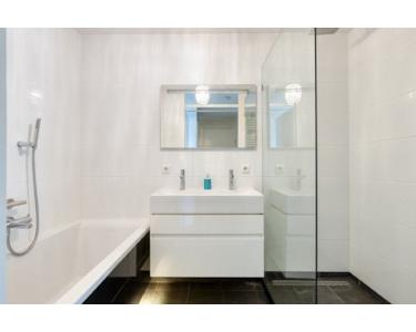 Großzügiges Badezimmer (175 x 260 cm) mit großer Badewanne mit thermostatgesteuerter wasserhahn (Grohe) (Doppelbadewanne), separater begehbarer Regendusche mit thermostatgesteuerter wasserhahn (Grohe), Doppelwaschbecken mit 2 Hähnen, Heizung und dimmbarer Beleuchtung.
