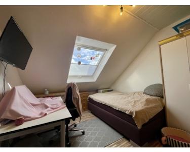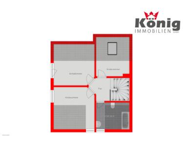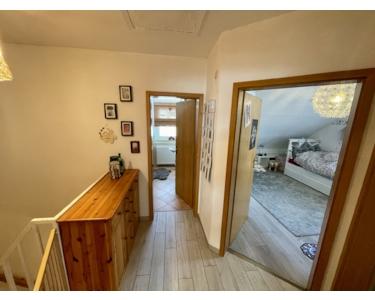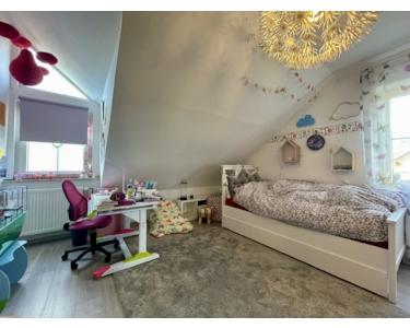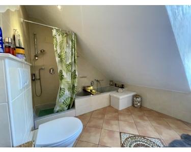 Im Dachgeschoss befinden sich drei weitere Zimmer sowie ein Badezimmer mit Dusche und Wanne.