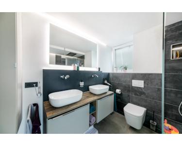 - Tageslichtbad mit Walk-In-Regendusche und zwei Waschbecken