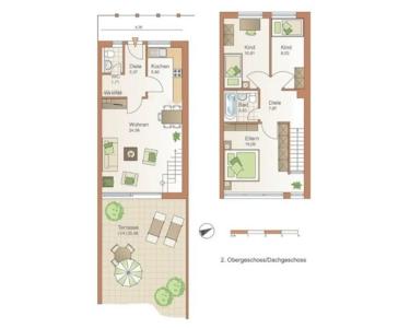 4-Zimmer Dachterrassenwohnung im Maisonettestil über 2 Stockwerke mit: