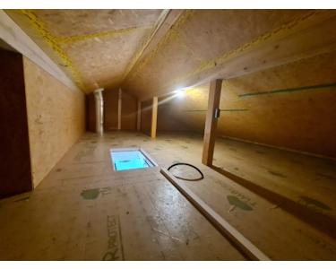 Der großzügige Wohn-/Essbereich mit der breiten Fensterfront und dem zweifachen Zugang zur Terrasse/Garten beträgt 34 qm. Zusätzlicher Stauraum ist im EG im Technik-/Hauswirtschaftsraum (Stellplatz für Waschmaschine und Trockner) und in dem Abstellraum unter dem Treppenaufgang vorhanden. Ein sehr großer weiterer Abstellraum ergibt sich durch das über eine Einschubtreppe zugängliche gedämmte Dachgeschoß.