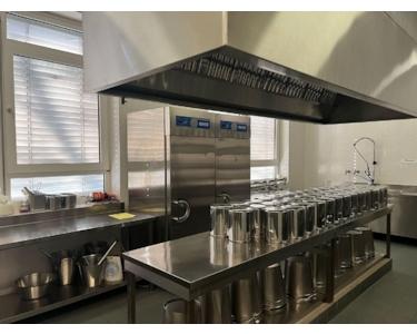 Ein bis 100 Kg Güteraufzug verbindet den vorhandenen im EG Produktions-Laborraum mit einer 54m³ bis -30 C° Tiefkühlzelle im UG.