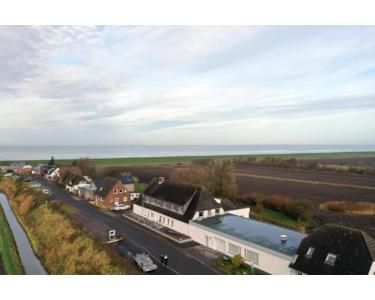 Das Haus bietet viel Möglichkeiten der Nutzung und hat eine lange Tradition auf Nordstrand. Ein Mehrgenerationenhaus mit 3-4 großen Wohnungen, bis zu 6 Ferienwohnungen oder Wohnhaus mit Gewerbeanteil (das flache Gebäude rechts neben dem Hauptgebäude gehört dazu)(Werkstatt, Büro, Praxis, Garage für bis zu 7 Fahrzeugen) ist möglich. Die Wohnfläche könnte bis auf ca. 680 m² erweitert werden. Die untere Etage wurde 2018 saniert, inkl. neuer Fenster, Türen, Bodenbeläge, Elektrik und Heizungsanlage. Die obere Etage (ca. 150 m²) besteht aus ehemaligen Gästezimmern und muss noch renoviert werden. Da es sich um Trockenbauwände handelt, kann dieser Bereich noch frei gestaltet werden.