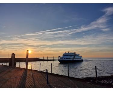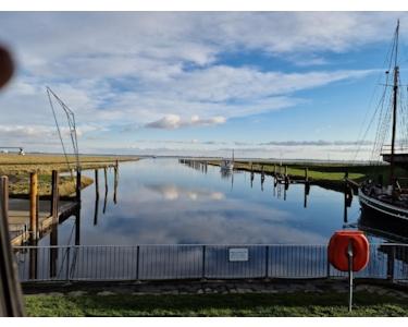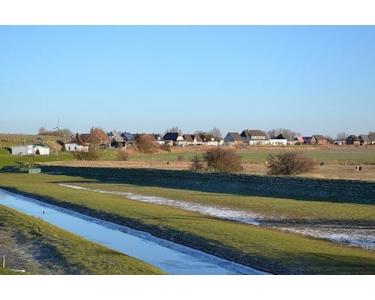 Das Haus liegt auf einem Binnendeich und ist ca. 200 m vom Nordseedeich entfernt, der zu langen Spaziergängen einlädt. Hinter dem Haus befindet sich die Frühstücksterrasse und vor dem Haus die Klönschnackbank, mit jeweils weitem Blick über die Insel. Ein weiterer Sitzbereich ist im Innenhof.