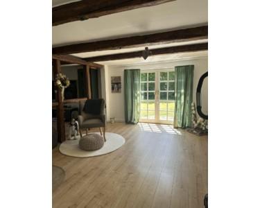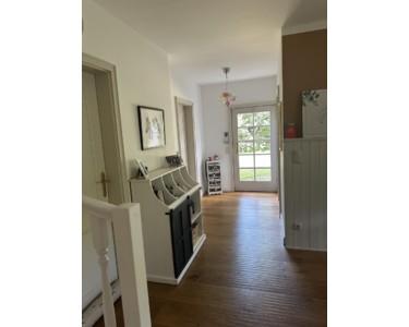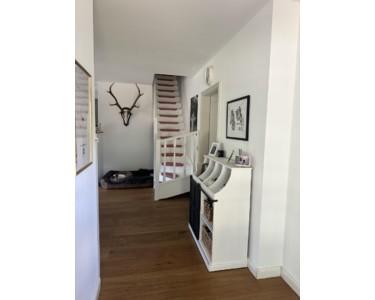 Im Erdgeschoss befindet sich wunderschöner breiter Eichendielenfußboden, mit Ausnahme der Bäder und des Wohnzimmers (Fliesen und Laminat).