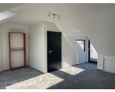 In der unteren Etage befindet sich neben dem Wohnzimmer und einem Arbeits-/Schlafzimmer die Küche und das Badezimmer, während auf der oberen Etage ein großzügiges 37qm großes Schlafzimmer für ausreichend Platz und Komfort sorgt.