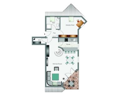 Ein gepflegtes Wohnhaus mit insgesamt nur 6 Wohnungen und ruhigen, überwiegend langjährigen Mitbewohnern. Die Maisonettewohnung verläuft über das II. OG und Dachgeschoss. Aufgeteilt in Wohn-/Esszimmer mit offener Küche, großzügiger Südbalkon, Flur, Arbeits-/Kinderzimmer, Duschbad mit WC, eine offene Wendeltreppe führt auf die Galerie mit Platz für einen Arbeitsbereich, Schlafzimmer mit begehbarem Schrank, Bad mit Wanne und WC.