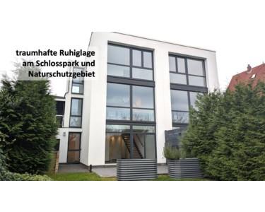 - traumhafte, unverbaubare Ruhiglage am Schlosspark mit Panoramablick ins Naturschutzgebiet von allen Ebenen des Hauses