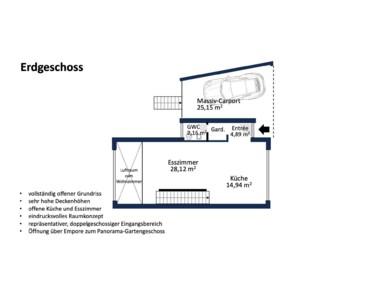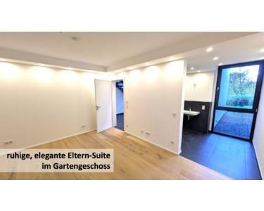 - außergewöhnlich großzügig und hell, hohe Deckenhöhen und zwei Lufträume, großzügiges Wohnzimmer mit großer Garten-Terrasse