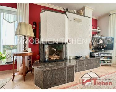- Das Herzstück des Hauses ist das offen gestaltete Wohn-/Esszimmer mit Erker und einer gemütlichen Kamin-Landschaft