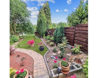 Das Haus ist von einem großzügigen Garten umgeben, der ausreichend Platz für Freizeitaktivitäten und Gartenarbeit bietet.