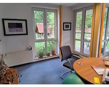 Die Bürofläche liegt auf der Rückseite des Grundstücks und damit dem verkehr sehr abgewandt und ruhig. Die vorhandene Terrasse und das Sondernutzungsrecht an einem Gartenteil bieten genügend Freiraum für eine Entspannung in den Arbeitspausen.