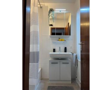 - Modernisiertes Badezimmer, neue Bodenbeläge
