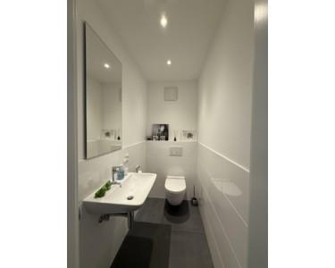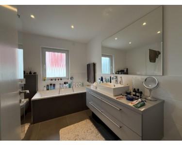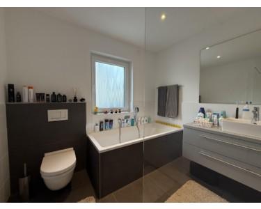 - Tageslicht-Bad mit Badewanne, Dusche, großem Waschtisch und WC