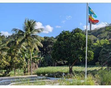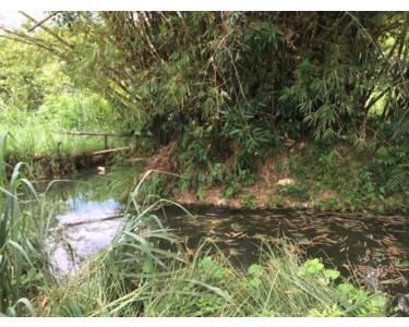 Fischteich, ca. 2ha landwirtschaftlich genutzt, Maniok, Bananen, Kokos, Mango