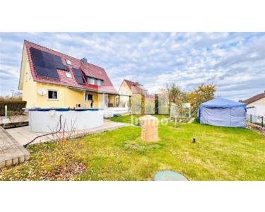 Ein-bis Zweifamilienhaus BJ 1957/Anbau 1959, Grundstück 750m², Wohnfläche EG ca. 80,44 m²+ OG ca. 65,34 m² = gesamt ca. 145,78 m², Elektrik teilweise erneuert dreiadrig/ FI Schalter erneuert, Sat TV/ Kabel TV/ DSL/ Glasfaser in der Straße, 30er Mauerwerk, DG vollständig gedämmt, Treppe KG massiv/ gefliest, Treppe EG-DG Echtholz in Leichtbauweise, angelegter Gartenbereich (vollumzäunt/eingefriedet), Zisterne 1.600l + Pumpe, große überdachte Terrasse mit Solar/Wasserschutz/ Stahlträger verzinkt, Freisitz mit Pool/Pumpe/Solarthermie, Carport/ Geräteanbau/ Schuppen, Balkonkraftwerk auf Carport 800 Watt, Wallbox, 3x PKW Außen-Stellplatz
