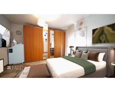 Das Hauptschlafzimmer überzeugt mit einem schönen Blick auf die grüne Gartenfläche und bietet ausreichend Platz für ein großzügiges Bett, eine Kommode sowie einen geräumigen Kleiderschrank. Das angrenzende Zimmer lässt sich flexibel nutzen: Durch eine geschickt gesetzte Wand kann hier ein separater Raum entstehen. Perfekt, um ein zusätzliches Kinder- oder Arbeitszimmer zu schaffen. Aktuell besteht ein offener Übergang zwischen den Räumen, was auch die Möglichkeit einer großzügigen Ankleide bietet. Somit hätten Sie entweder 2 Schlafräume oder ein Hauptschlafzimmer mit eigenem Ankleideraum zur Verfügung.