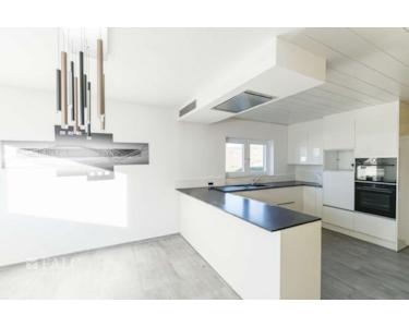 Die Küche ist großzügig gestaltet und verfügt über eine neuwertige und hochwertige Einbauküche aus 2023 mit BOSCH-Geräten sowie einen separaten Essbereich. Eine zweiflügelige Schwingtür verbindet den Küchen- mit dem Wohnbereich und sorgt für ein offenes Raumgefühl.