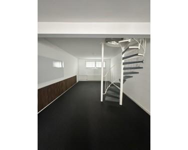Die Gesamtfläche von ca. 203 m² verteilt sich auf zwei Etagen (Hochparterre und Souterrain), die über eine innenliegende Wendeltreppe miteinander verbunden sind. Beide besitzen separate Ausgänge zum Gemeinschafts-Hausflur.